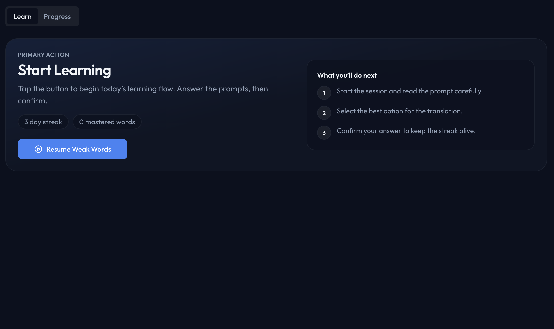 Stop guessing and start remembering. A distraction-free, native-verified path to fluency. Currently 100% Free.